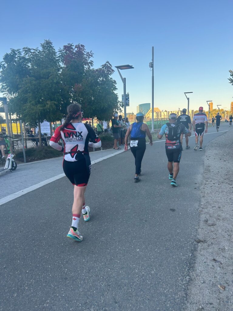 The bike course was a mix of beauty and challenge. Babel Road had a rough surface but was lined with gorgeous trees. The route wound through farmland with varying road conditions. I’m lucky to train on diverse surfaces, so it didn’t faze me, but many athletes were nervous about riding near big ditches with no shoulders. This led to riders clustering in the middle or left, creating huge draft packs and some risky passing. Unfortunately, there were quite a few crashes, but I managed to stay safe and steady.