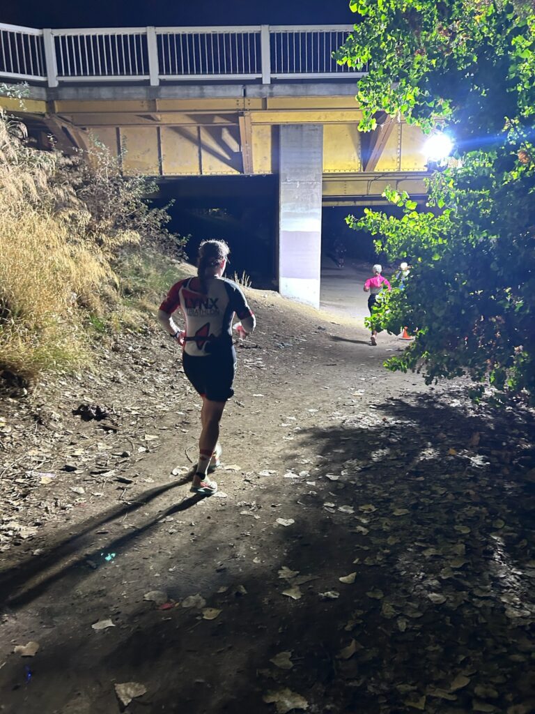 I forgot to grab my headlamp from my personal needs bag on the first lap, so I ran about 13 km in pitch black on rough dirt trails. On the plus side, it forced me to focus on not falling, which was a great distraction while I pounded out the distance.